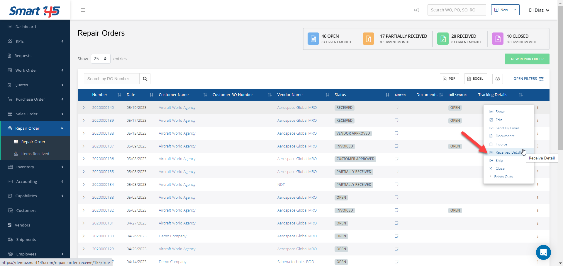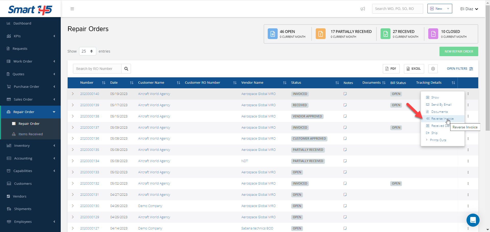 In case you need to modify the part's details, you'll also have to Reverse the Receiving process