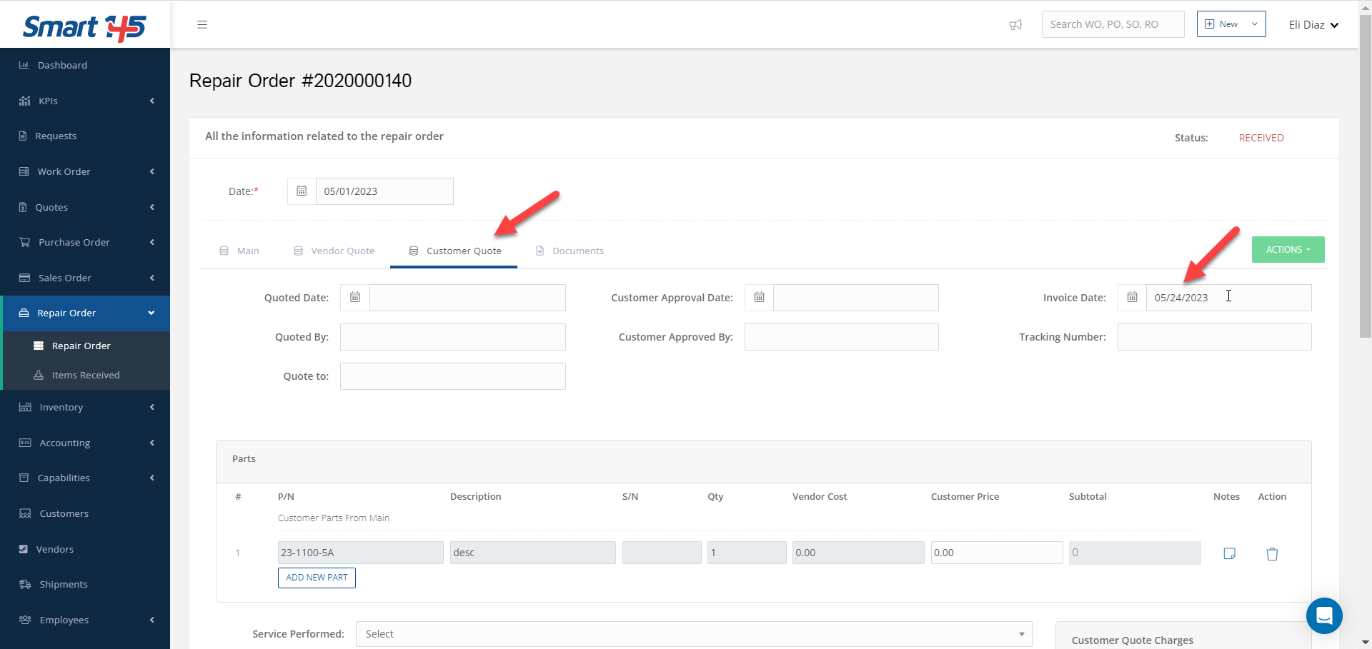 It is perfectly possible to make changes to an invoiced Repair Order, from adding notes to modifying parts details, provided that you first reverse the invoicing process.