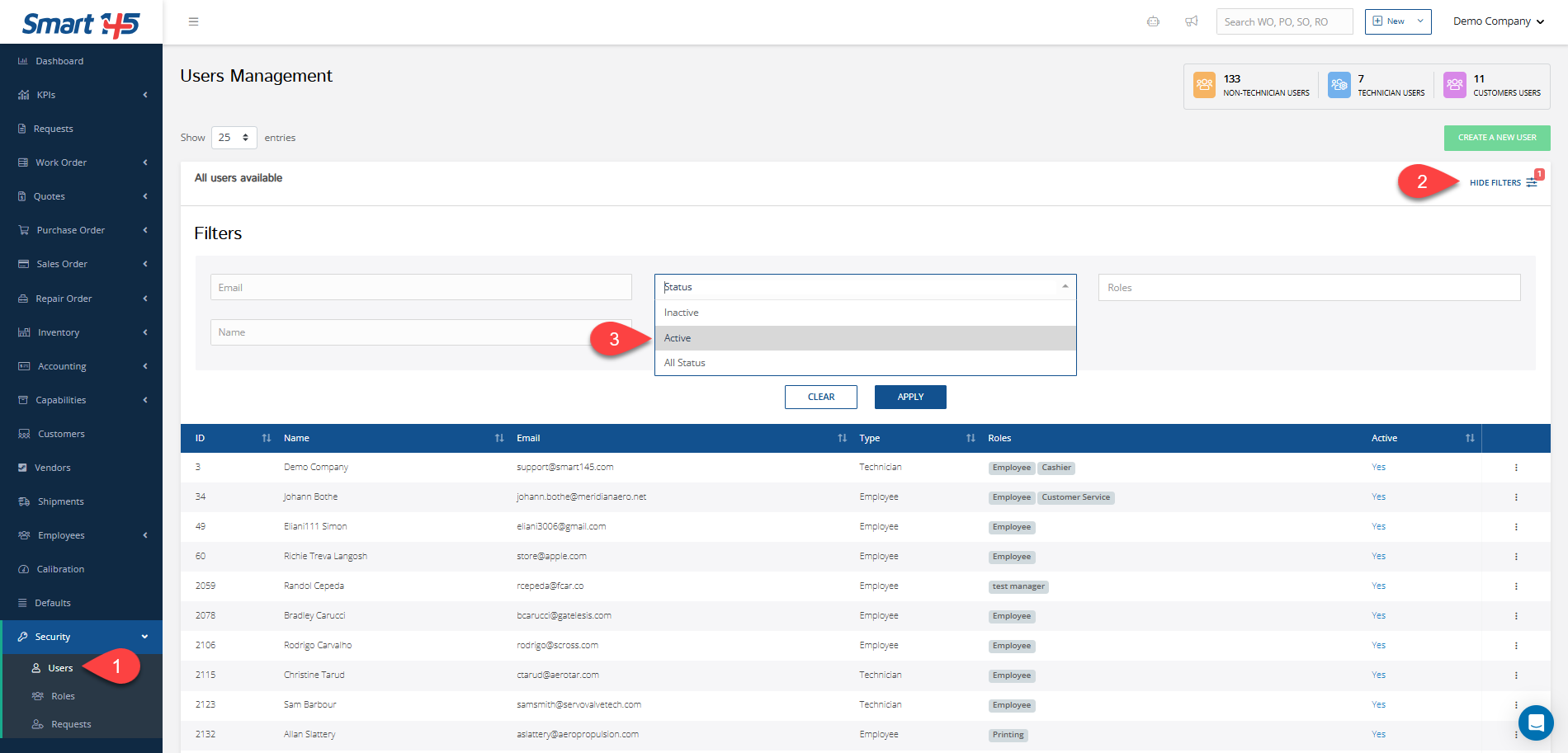 3. In the "Status" section, make sure that the "Active" option is selected and click "Apply". This will display all active users in the system.