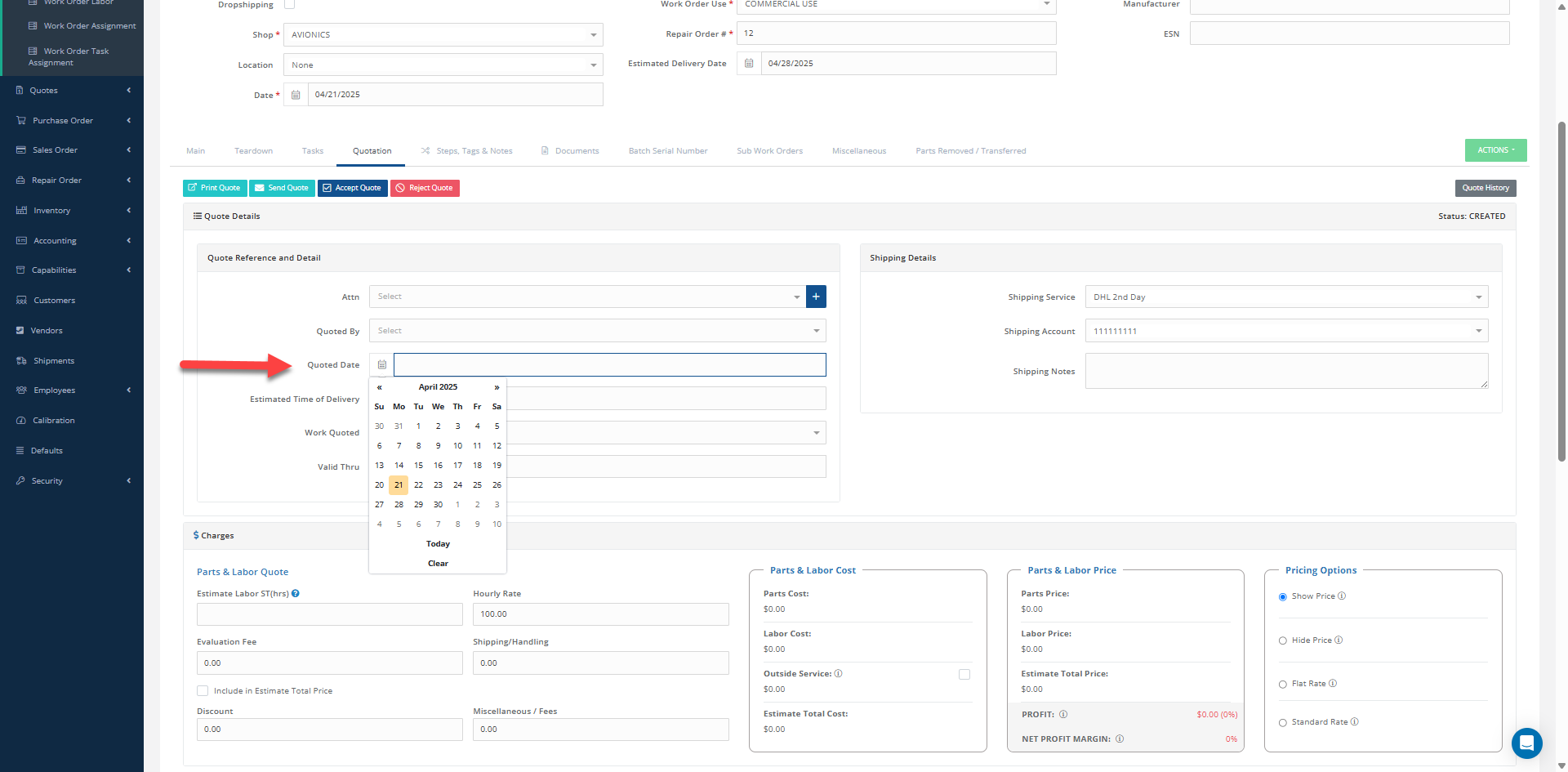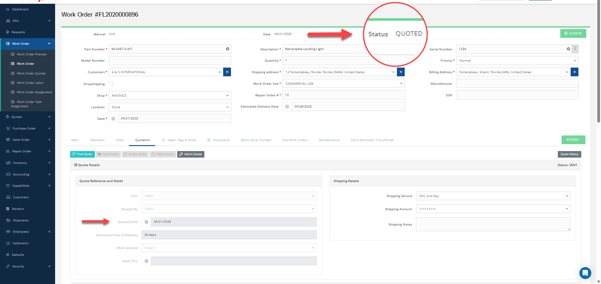 2. "QUOTED" : Once priced, you will have to assign a quoted date, once you "SAVE" it. It will move to "Quoted"
