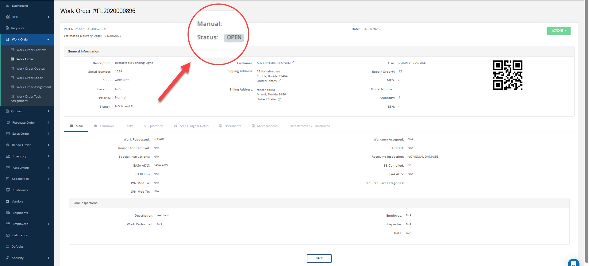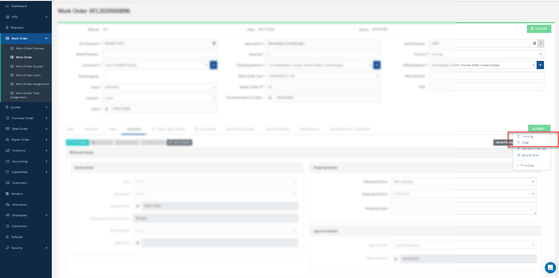 Once invoiced or closed, the work order status will update accordingly. At this stage, no further modifications can be made unless the status is reverted.